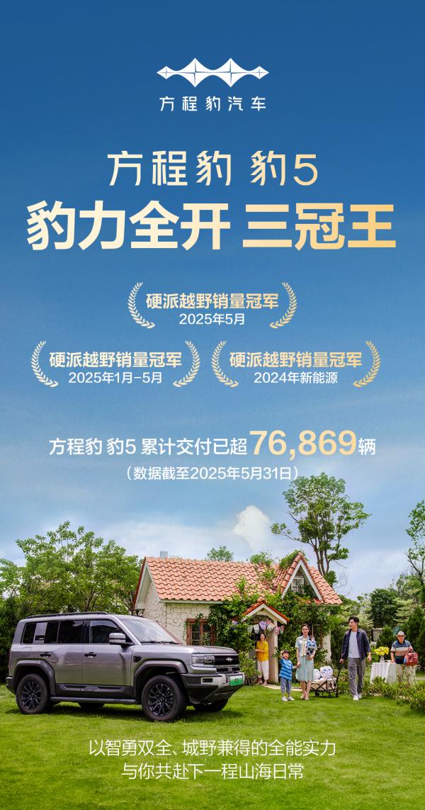 而在硬派越野车市场,豹5又斩获了可谓是“三冠王”的成绩,累计销量超过七点六万台。作为硬派越野销量的佼佼者,豹5以其出色的越野能力和耐用性,收获了消费者的高度认可。这种围绕生活方式及用车场景的产品定位,使得方程豹成功地将传统汽车的用户群体转化为自己的忠实玩家。