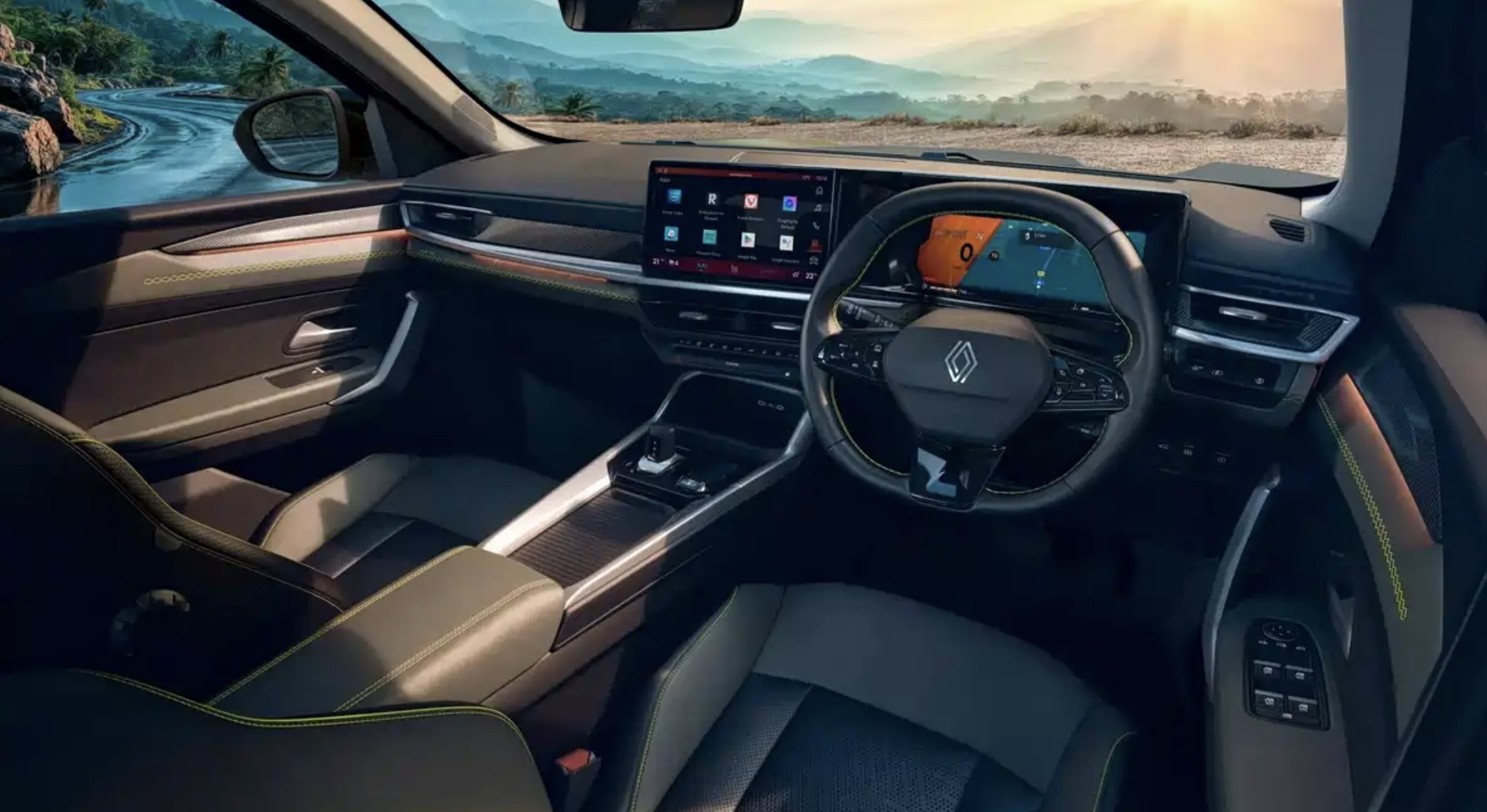 进入车内,全新雷诺Duster采用了大面积黑色软性材质的铺陈,加入大量黑色仿碳纤维装饰面板和亮黑色钢琴烤漆饰板的点缀,并加入了精致的黄色手工双缝线,还有大量银色金属元件的点缀,带来了丰富的层次感。中控台配备了三辐式多功能方向盘,配备10.1英寸+10.25英寸的屏幕,有着丰富的App。此外,驾驶辅助系统上,新款Espace提供了L2级别的功能,包括速度范围0-160km/h、支持低速跟车的自适应巡航系统、增强型自动泊车辅助、车尾横向来车预警、自动紧急制动、车道偏离预警与车道辅助保持、驾驶员疲劳监测、盲区监测、L2级自动驾驶。