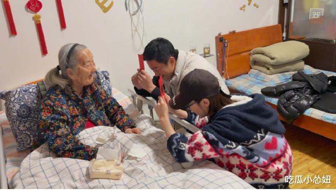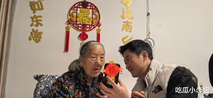 吴京和谢楠捧着手机回到家,俩人就那么蹲在奶奶床前,像两个等着被表扬的孩子,小心翼翼把视频放给奶奶看。103岁的老人看着满屏祝福,笑得眼睛眯成一条缝,一边看还一边叮嘱吴京:一定要替我谢谢大家啊!