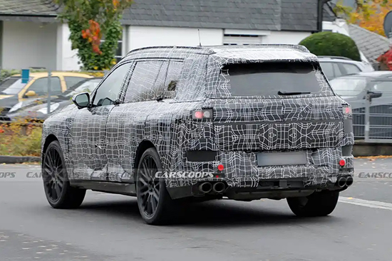 尾部方面,结合最新的谍照,全新宝马X7或将采用与宝马iX3造型类似的尾灯组,并配备双边双出的排气,以此推断该车型或为混动版本。