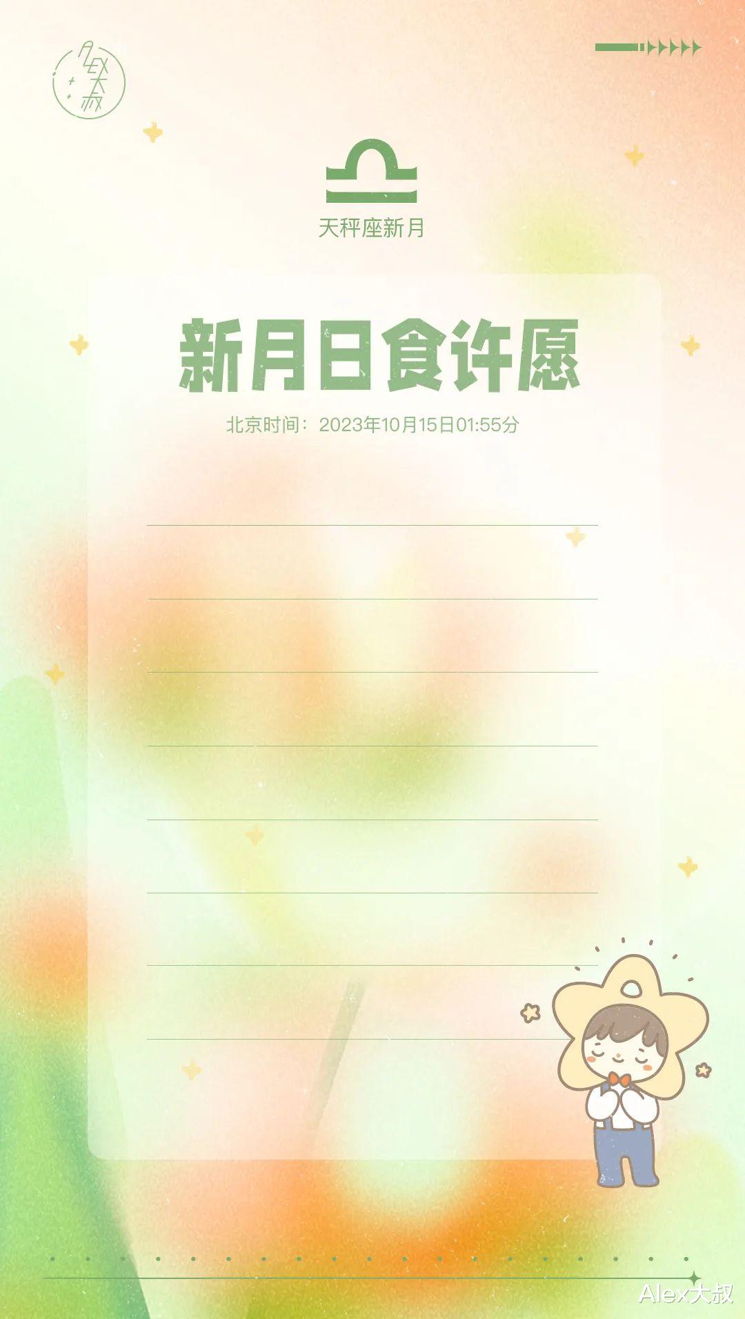 北京时间10月15日01:55分,我们迎来了一次新月,新月发生的时候,我们还处于日食的状态之中,因此这次新月也夹杂着日食的强大能量。此次新月发生在风象星座——天秤座中,对我们所有人都有影响,往往新月日食的能量会持续3到6个月的时间,但如果你出生在10月15日前后一天的话,可能这次影响力对你个人来说会持续近1年。新月往往预示着一个新的开始,而日食更是能量巨大,会给我们的生活迎来骤变,这种骤变也许我们在日常的生活里已经感受到了,那么这次新月日食,会给我们带来哪些启示呢?1、 天秤座的能量预示着一对一的关系,但这个一对一可以上升到完全两个不同的利益集团,国家之间的关系,也可以是我们日常中的一对一社交,所以这次新月可能会开启许多新的关系——结交新的朋友,建立新的合作关系,找到同盟成为一个战队的人,也可以是迎来一段新的恋情,甚至是有些人要步入婚姻殿堂了。2、 这次新月也预示着,我们更会在意平等性,从情感上的门当户对,到友谊之间的平等交流,以及合作上的互惠互利,如果能遵从这一个规则,那么这段关系会更加持久,且会升华,相反如果无法做到,这段关系可能会在年底之前结束。3、 为自己的名誉,口碑而战,学会用法律的方式来维护自己,以及拒绝断章取义被人恶意引导情绪,在这个阶段,你看到的,听到的未必是真相,可能会被有心之人利用,因此我们在做决定,判断的时候谨慎一点,不要操之过急。4、 换一种生活态度或者生活模式,这次日食新月也会让我们提前感受到月底的月食,生活习惯,生活开支,生活模式,都会逐渐迎来转变,这未必是坏事,这是应对我们所担忧的隐患所做的准备。日食的影响会放大我们的情绪,但请你在这个阶段避免让自己大喜大悲,把它当成平常的一天来度过,不管听到什么,看到什么,见了什么人,都让自己平静下来——睡一觉,就过去了。新月开始后,我们开始一起许愿吧,将愿望手写下来,这是一个跟宇宙提交订单的过程,然后通过自己的努力,去实现它。很多骤变会慢慢到来,是时候打破一些平淡和无聊了。等你们的好消息。