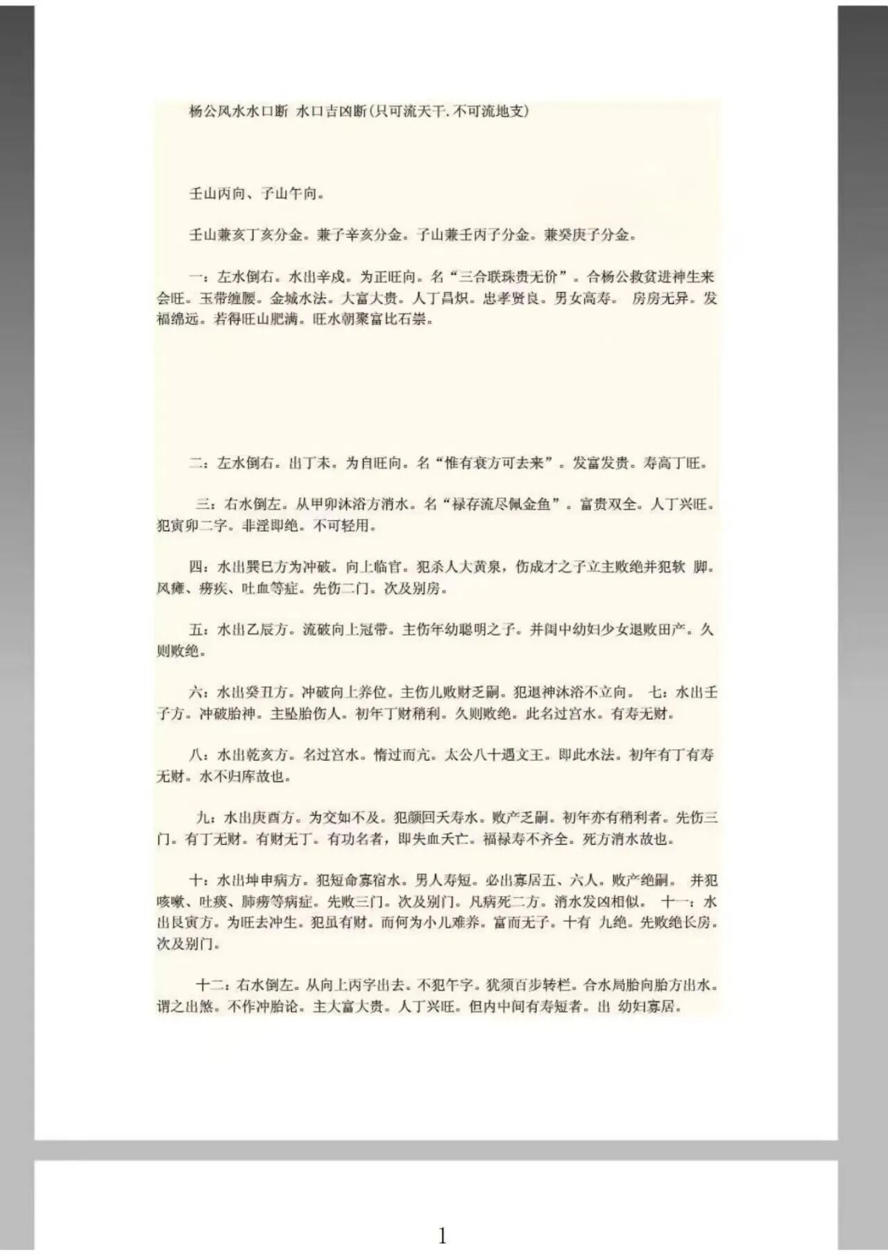 杨公秘传,水口断验;137页全本,传世解惑!《杨公风水水口断·水口吉凶断》(又称《杨公七十二水口吉凶断》),系杨公风水三合水法核心实操典籍,经“中国风水文化第一村”三僚传人整理完善,全书共137页,完整无缺、字迹工整、排版规整,承袭风水祖师杨筠松(杨救贫)三合水法精髓,凝聚三僚村历代名师的实战智慧与传承心血,依托三僚村千余年风水传承底蕴,系统收录杨公七十二水口吉凶断全体系内容,涵盖水口识别、三合水法应用、吉凶判定、实操断诀等核心要点,兼顾风水实操、杨公传承、古籍收藏,是风水从业者、杨公风水爱好者、古籍藏家梦寐以求的风水珍品,更是研习杨公三合水法、掌握水口吉凶断验技巧、传承中华赣派风水文化的核心指南。此书依托杨公正统法脉与三僚传人整理积淀,结合三僚村风水实操传承,137页篇幅精炼、字字干货,一册在手,无需深厚风水基础,也能循序渐进掌握水口吉凶断验真诀,彰显杨公风水典籍的实用性与传承价值。