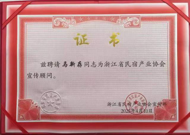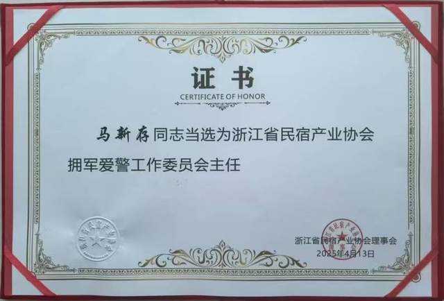 该工作委员会由浙江省民宿产业协会理事会经过慎重考虑和严格选举而产生,旨在进一步推动拥军爱警工作的全面深入开展,加强军民之间的紧密联系,共同促进社会和谐稳定。在这一重要时刻,新时代拥军爱警的发起人和积极践行者、拥军爱警网总监、《作家报·拥军爱警》专刊主编马新存,凭借其卓越的贡献和深厚的拥军爱警情怀,荣幸当选为首届浙江省民宿产业协会拥军爱警工作委员会主任。这是马新存担任浙江省民宿产业协会宣传顾问后又一职务。
