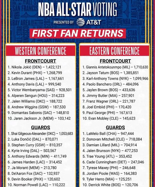 NBA全明星赛的风向标总是让人捉摸不透,这不,2025年的全明星第一阶段投票结果出炉,真是让人大跌眼镜。在这个星光熠熠的舞台上,昔日霸屏的球星们似乎遭遇了“长江后浪推前浪”的尴尬局面。