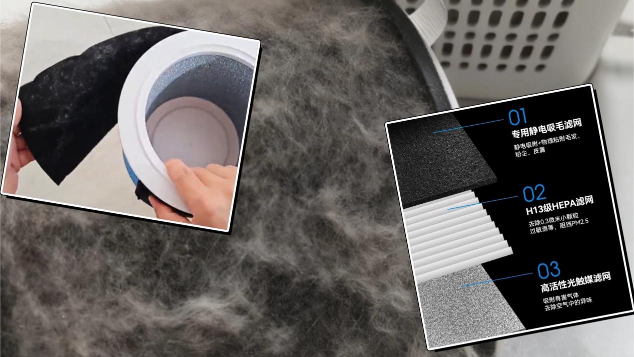 宠物空气净化器选哪个牌子好?这是宠物空气净化器的核心竞争力,初效滤网需作为前置防护优先考量!初效滤网能先拦截宠物毛发、浮尘等大颗粒杂质,避免缠绕堵塞主滤网,延长HEPA滤网和活性炭滤网的使用寿命。在此基础上,需搭配H13级及以上HEPA滤网+光触媒滤网,HEPA滤网锁定细小毛屑、过敏原和细菌,光触媒强效分解尿味、体味等异味。
