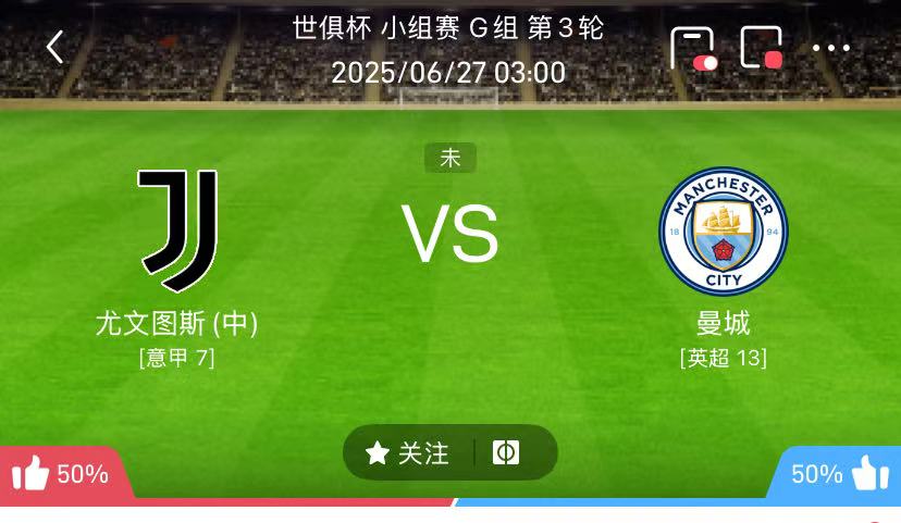 周四 001 世俱杯 尤文图斯VS曼彻斯特城