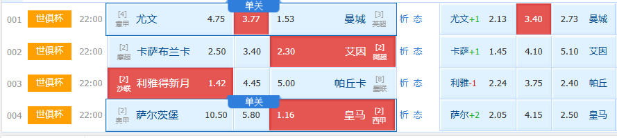周四 002 世俱杯 卡萨布兰卡热爱VS阿布扎比艾因