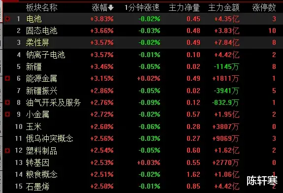 板块题材看,两市个股涨多跌少,固态电池、钠电池、钴金属、锂矿、种业、石事烯、一体压铸、复合铜箔等板块涨幅靠前;知识付费、ETC概念、数字货币、铁路基建、数字水印、华为海思、6G概念、跨境支付等板块跌幅靠前。今天固态电池、钠电池等方向涨幅靠前,孚能科技、鹏辉能源、天力锂能涨超15%,利元亨、翔丰华、当升科技等多股大涨。消息面上,2024鹏辉能源产品技术发布会将于8月28日召开。鹏辉能源宣布“全固态电池重大突破”,此举引发市场热议。固态电池因高安.全和高能量密度,有望开启新一轮电动化创新周期。引发了这个板块走强,另外、这个板块调整比较充分,美联储降息也是利好光伏等新能源板块,所以,我们认为后期新能源板块出现领涨的概率较大。房地产板块严格说周末是利空的,但今天出现了低开高走,成为了两市护盘主力,原因是房屋养老金精.准涉及的是老破小,这些房子一般都是在城市中心地段,另外,很多老破小,旁边是很好的学校,也就是学区房吧。未来这些房子持有者,要么支付保险费与体检费;要么将房子以旧换新,支持新房,对老破小是利空,但是对于新开的房地产,还是一个间接的利好,然后今天房地产开发板块开始领涨了,但今天房地产板块跟上一波领涨的房地产销售不是一个概念,比如上波领涨的是我爱我家,今天领涨的是金地集团。最后本周进入中报的最后披露阶段,也是最密集的阶段,大家还是要注意相关个股的风险。尽量回避没有公布业绩的个股。