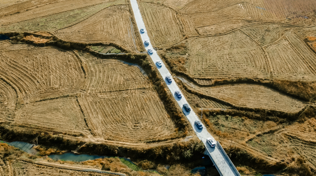 途中,车队整齐有序,在前往明月山村的路上,航拍镜头记录下这温暖而充满力量的一程,也记录了这个暖冬的美好景色。
