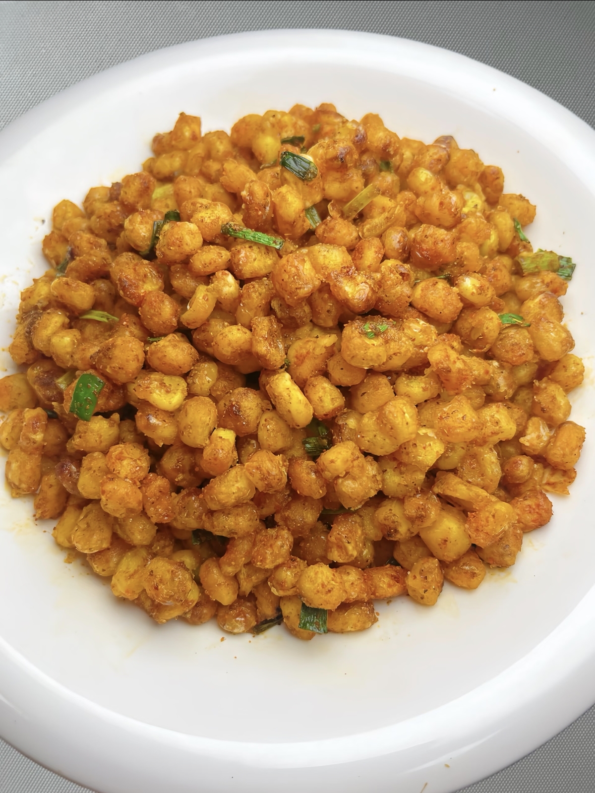 当食材炒至微微焦黄时,便是调味的最佳时机。撒入适量的椒盐,根据个人口味还可以加入少许的盐和鸡精,继续翻炒均匀,让椒盐的咸香风味充分渗透到每一颗玉米粒中。此时,整个厨房都会弥漫着诱人的香气,让人忍不住想要尝上一口。最后,当玉米粒炒至金黄酥脆,配菜也熟透入味时,一道色香味俱佳的椒盐玉米粒便大功告成了。盛入盘中,金黄的玉米粒点缀着翠绿的青豆和橙红的胡萝卜丁,色彩鲜艳,让人一看就食欲大增。