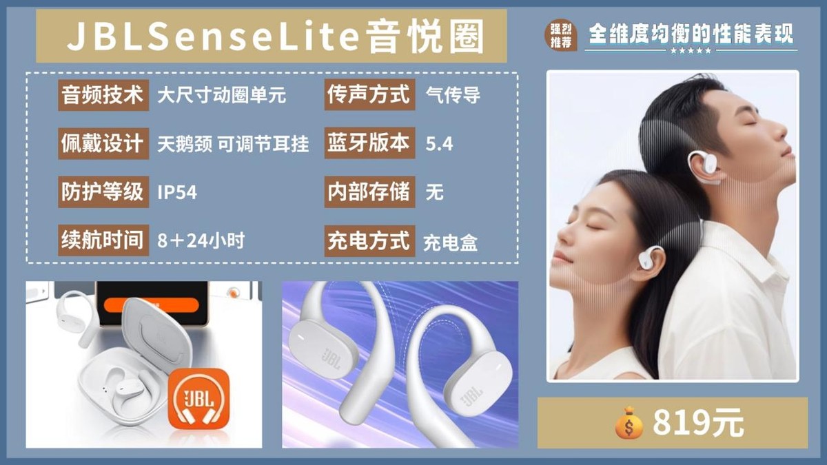 4.JBLSenseLite音悦圈:同价位段的“全能水桶”耳挂式耳机
