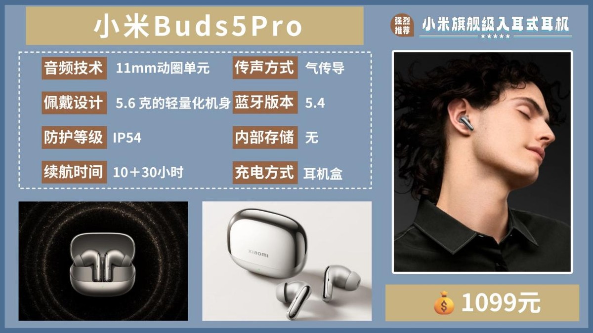 6.小米Buds5Pro:高性价比的旗舰级入耳式耳机