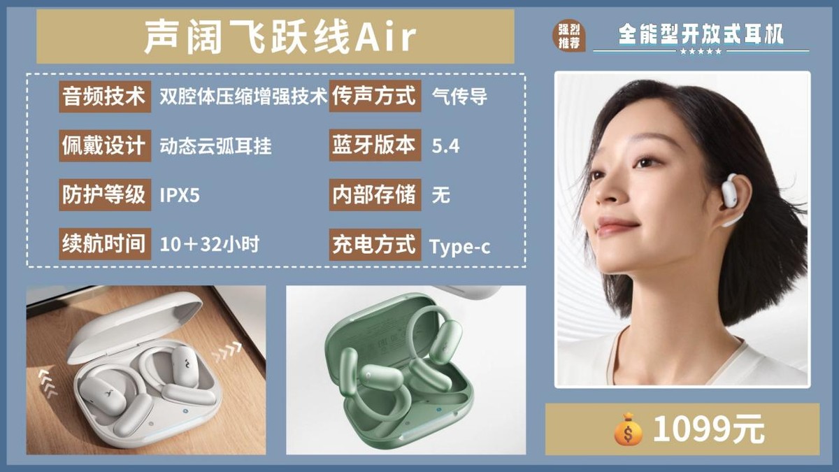 全维度性能均衡,在同价位开放式耳机中性价比突出,是该价位段的优选音频单品。