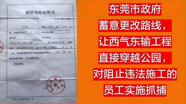 十三、“东莞市政府蓄意更改路线,让西气东输工程直接穿越公园,对阻止违法施工的员工实施抓捕”:西气东输二线工程是我国第一条引进境外天然气资源的大型管道工程,是列入国家“十一五”规划建设的重大项目。2009年和2010年相继取得了广东省、东莞市、樟木头镇地方规划部门批复,并于2011年12月,获得原环境保护部批复同意按照变更后的方案进行项目建设,在建设过程中,公安部门依法对阻挠施工的部分人员给予治安处罚。