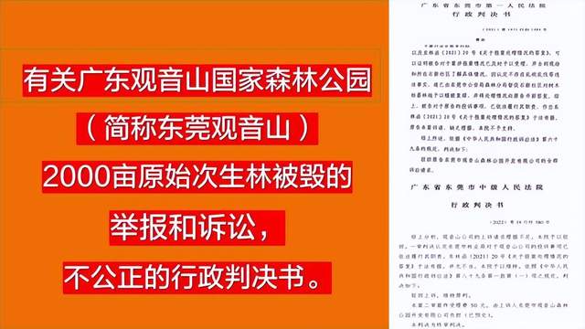 二十二、“有关2000亩原始次生林被毁的举报和诉讼”:对于有关2000亩原始次生林被毁的举报,东莞市林业局已依法调查处理,并将调查处理结果书面答复举报人。对于东莞市观音山森林公园开发有限公司提起的行政诉讼,东莞市第一人民法院初审判决(〔2021〕粤1971行初1384号)东莞市中级人民法院终审判决(〔2022〕粤19行终580号)均认定东莞市林业局对于观音山公司的举报事项已依法履行职责,驳回东莞市观音山森林公园开发有限公司的全部诉讼请求。