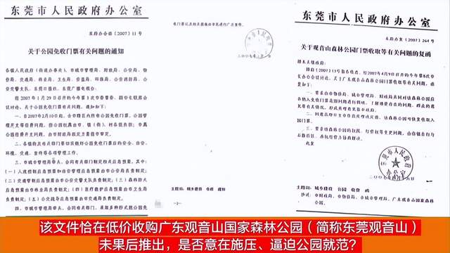 试问,同为东莞市的民营景区,为什么“隐贤山庄”与“龙凤山庄”等并未被要求停止收费,唯独观音山公园一家成为执行对象。这种选择性执法,何以称为“全市统一”?