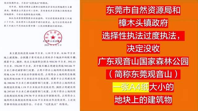 十八、“东莞市自然资源局和樟木头镇政府选择性执法过度执法,决定没收公园一张A4纸大小的地块上的建筑物’:上述处罚事项均依法依规作出,不存在“过度执法”的情况。