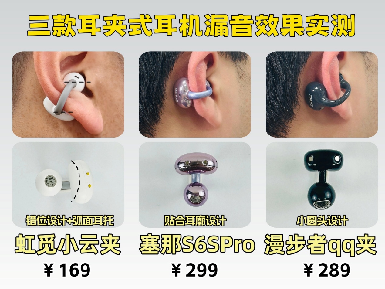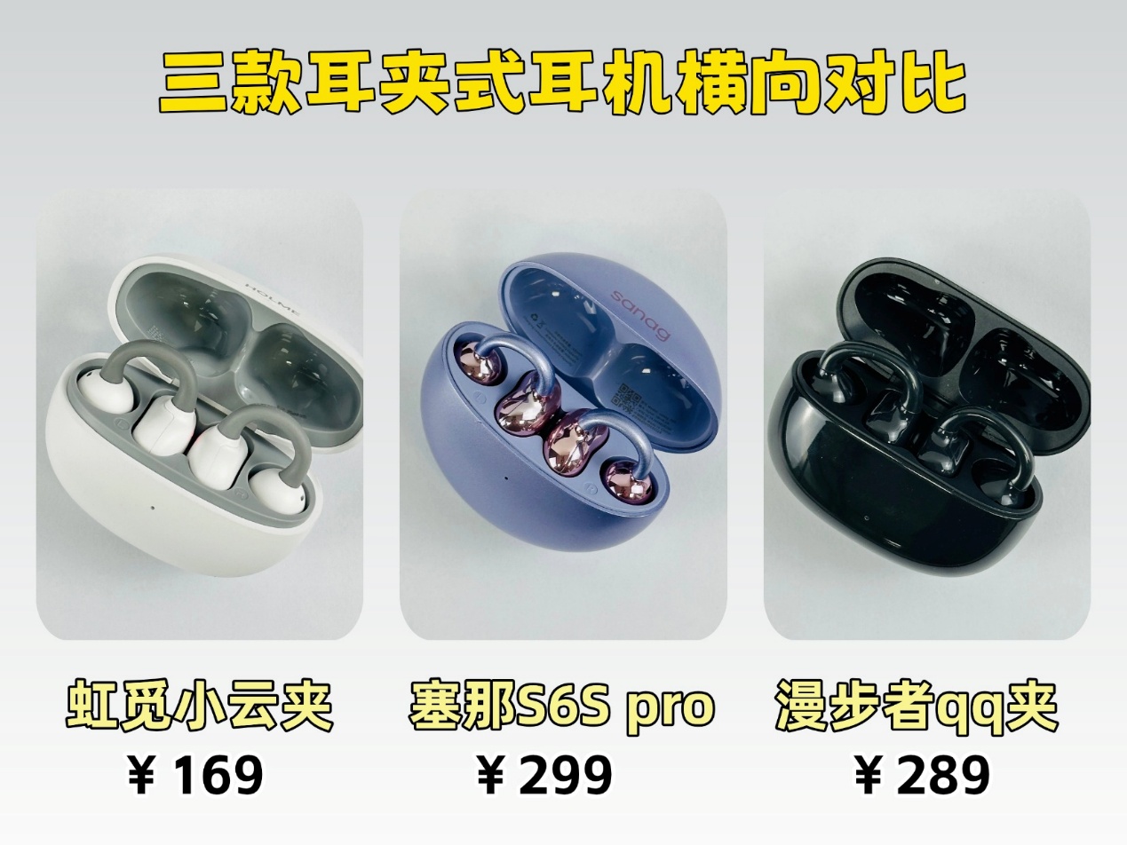 后台最近收到不少关于耳夹式耳机的信息,原来大家都喜欢它不堵耳道、久戴不疼的优点,但市面上这类耳机五花八门,佩戴感受、音质表现和防漏音效果差距很大,想挑到合适的确实不容易。为了帮大家避开选购雷区,我特意选了三款热门机型做详细横评——高性价比的虹觅小云夹、音频老厂漫步者QQ夹、主打无感佩戴的塞那S6S Pro,从多方面对比分析,帮不同需求的朋友找准适配款,不用再为选耳机纠结。