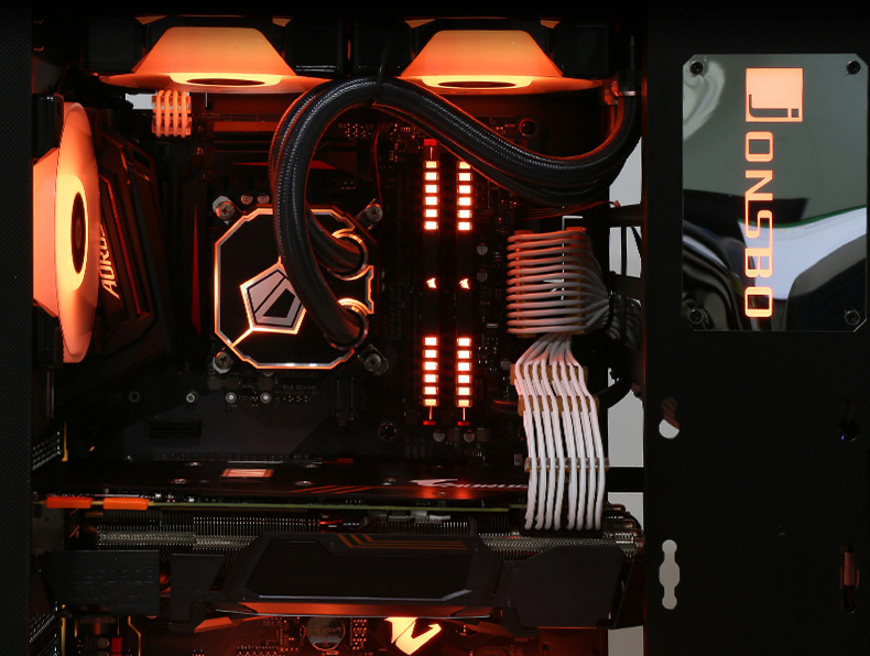 这款机箱的外观其实不是主要的,重点在于它的核心配置上。超高的配置造就了极为强悍的性能。处理器方面采用了,英特尔酷睿九代i9 9900K处理器,8核心16线程处理器,14nm制程工艺,基础频率3.6G,可以睿频至5.0G,强劲运行各大游戏。显卡方面也极为强悍,既可以选择GeForce RTX2080,也可以选择RTX2080Ti,新图灵的架构,8G和11g可选,支持4K高清画质。高效水冷散热,低温运行电脑。