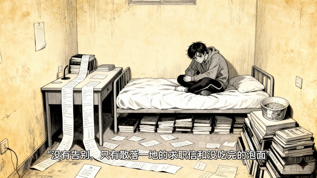 没有遗书,也没有道别,只有两样东西,满地散落的求职信,还有几袋没吃完的方便面。