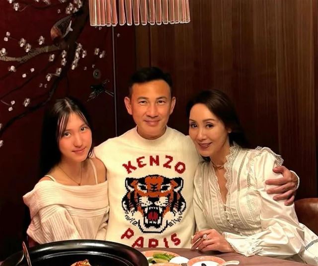 在这组最新曝光的九宫格照片中,林文龙身穿奶白色高领毛衣,单手环抱妻女,尽显家主风范。
