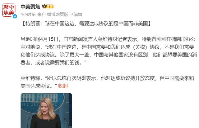 当地时间4月15日,白宫新闻发言人表示特朗普已经对中国进行了表态。