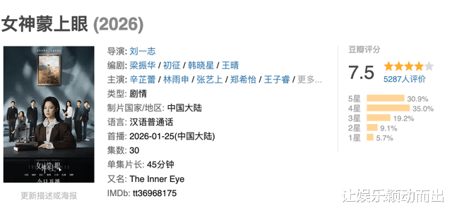 在当下的一众律政剧当中,《女神蒙上眼》的风格创新和品质追求是显而易见的。播出以来收视率持续夺冠,以开分7.5分的成绩成为豆瓣近年来律政题材罕见的高分,这些正是梁振华及其青春你好团队所有付出的回馈。