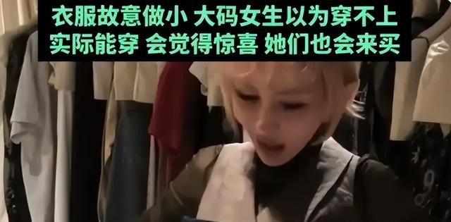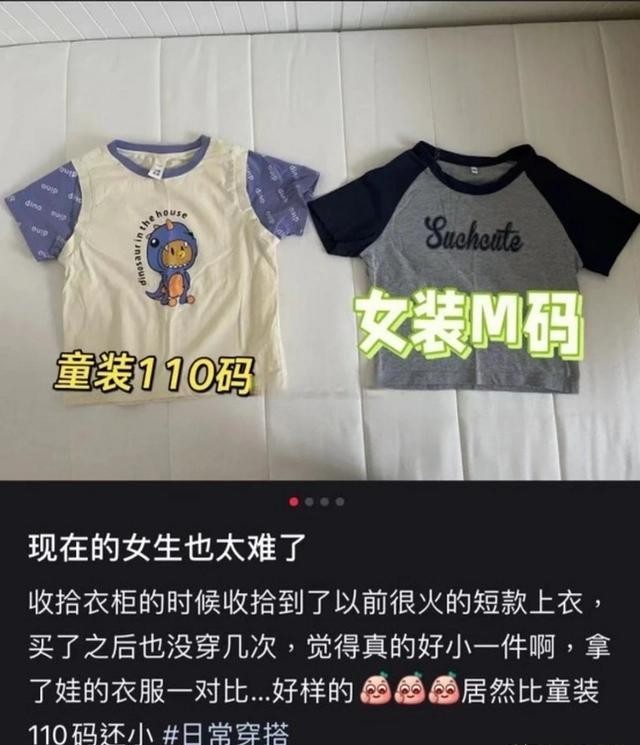 之前更是有网友放出图片,女装T恤的S码竟然还没有童装的110码大。