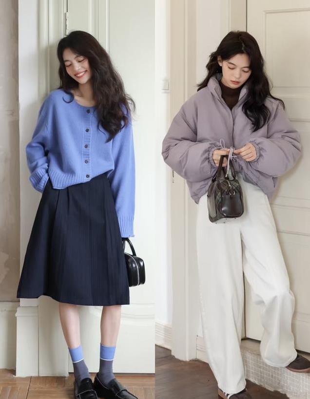 毛呢裤和毛呢半身裙,拥有同样的温暖。我们穿着毛呢半身裙的时候、还可以搭配加绒加厚的打底裤,穿起来舒适又保暖。