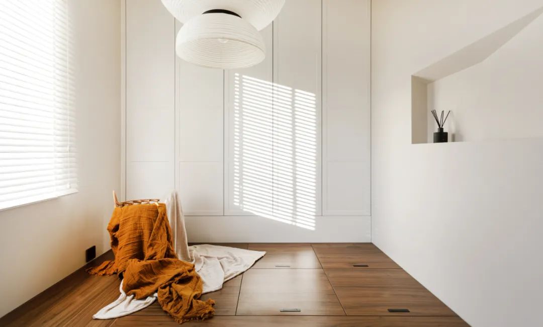 次卧目前作为客房兼具储物间来使用,整体采用地台+储物衣柜的形式,最大程度保证储物量。