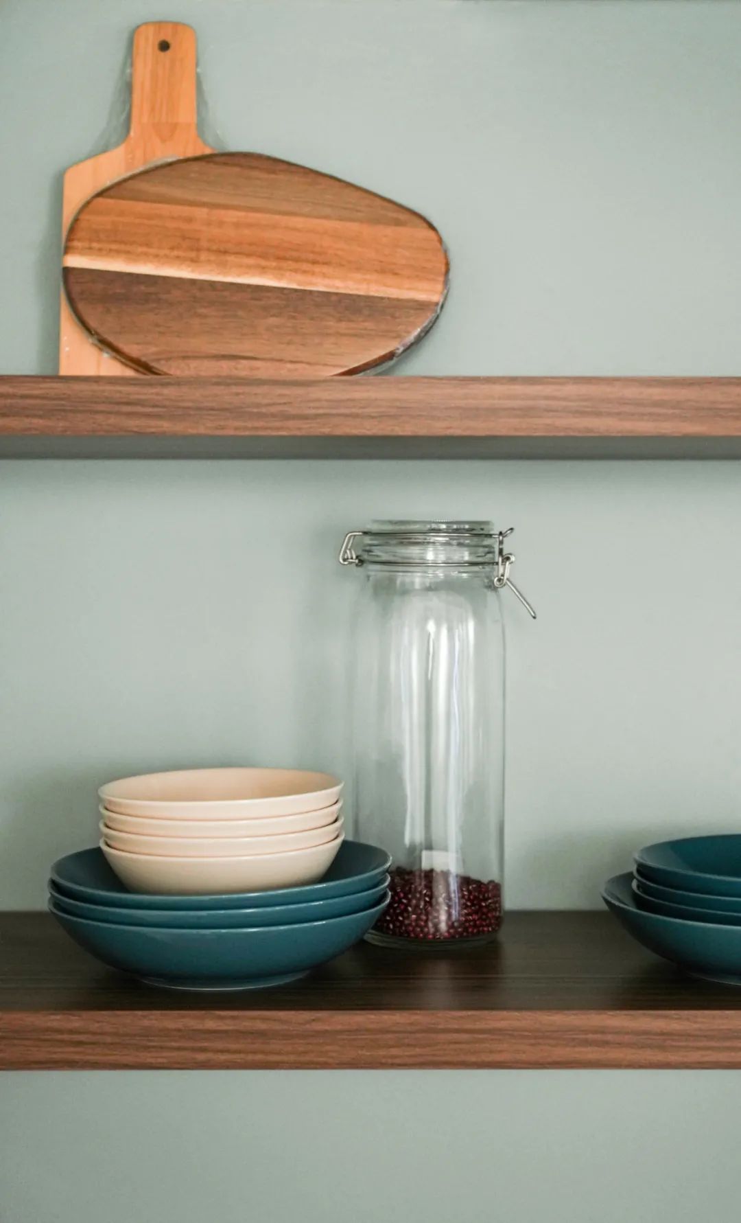 墙面空间也很好的利用了起来,做了搁板,可以放置一些碗碟等。