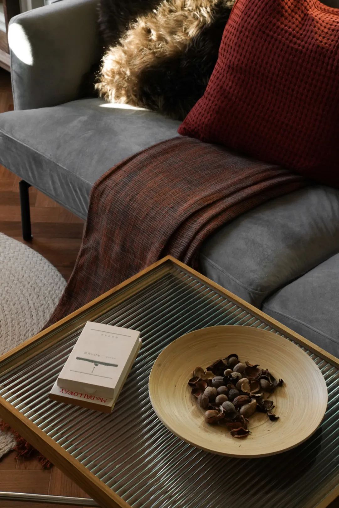 茶几则选择了轻便的玻璃材质的小茶几,减少空间的体量感。
