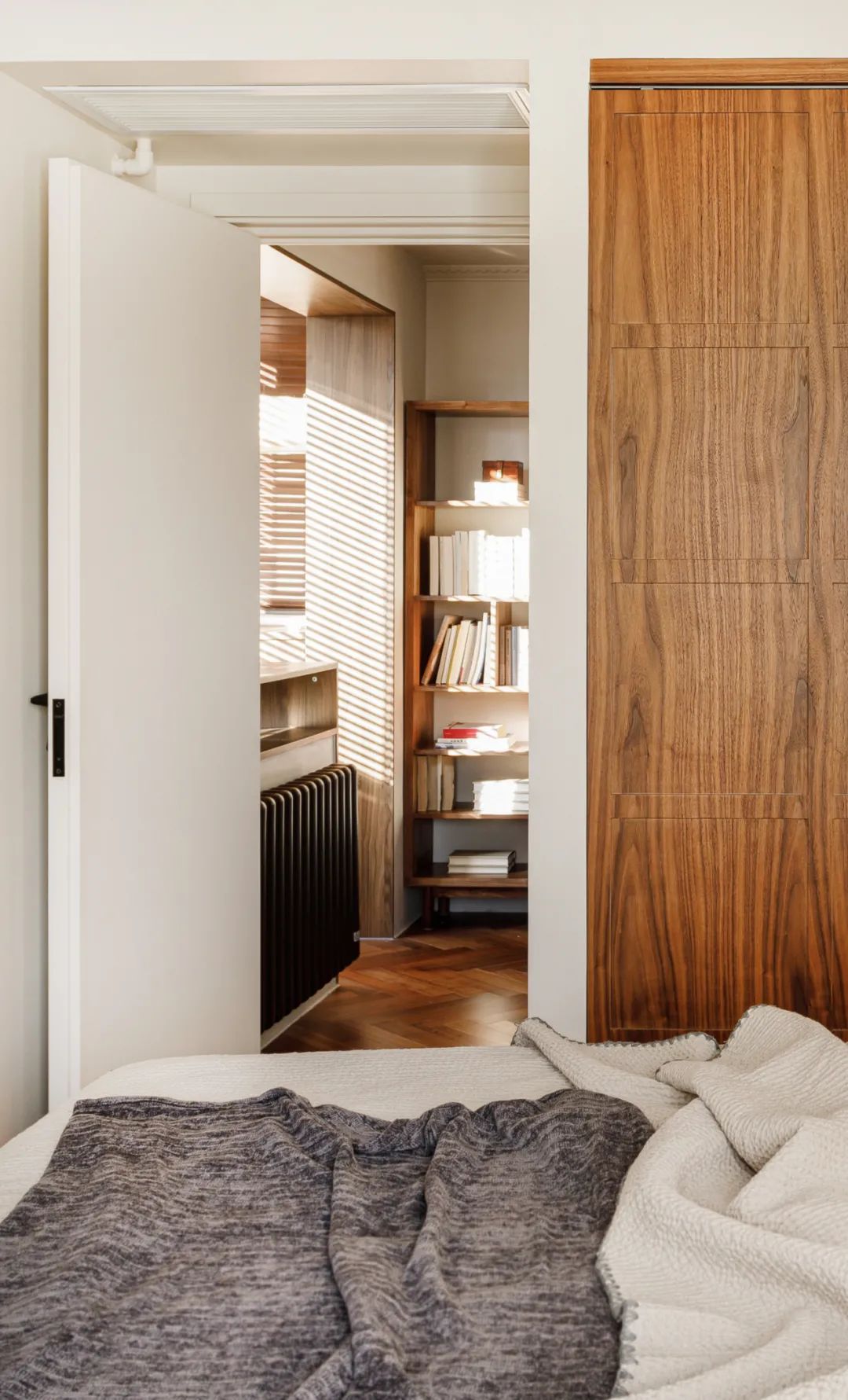 墙的背面是主卧衣柜,柜体也可以很好的隐藏住墙体的结构变化。