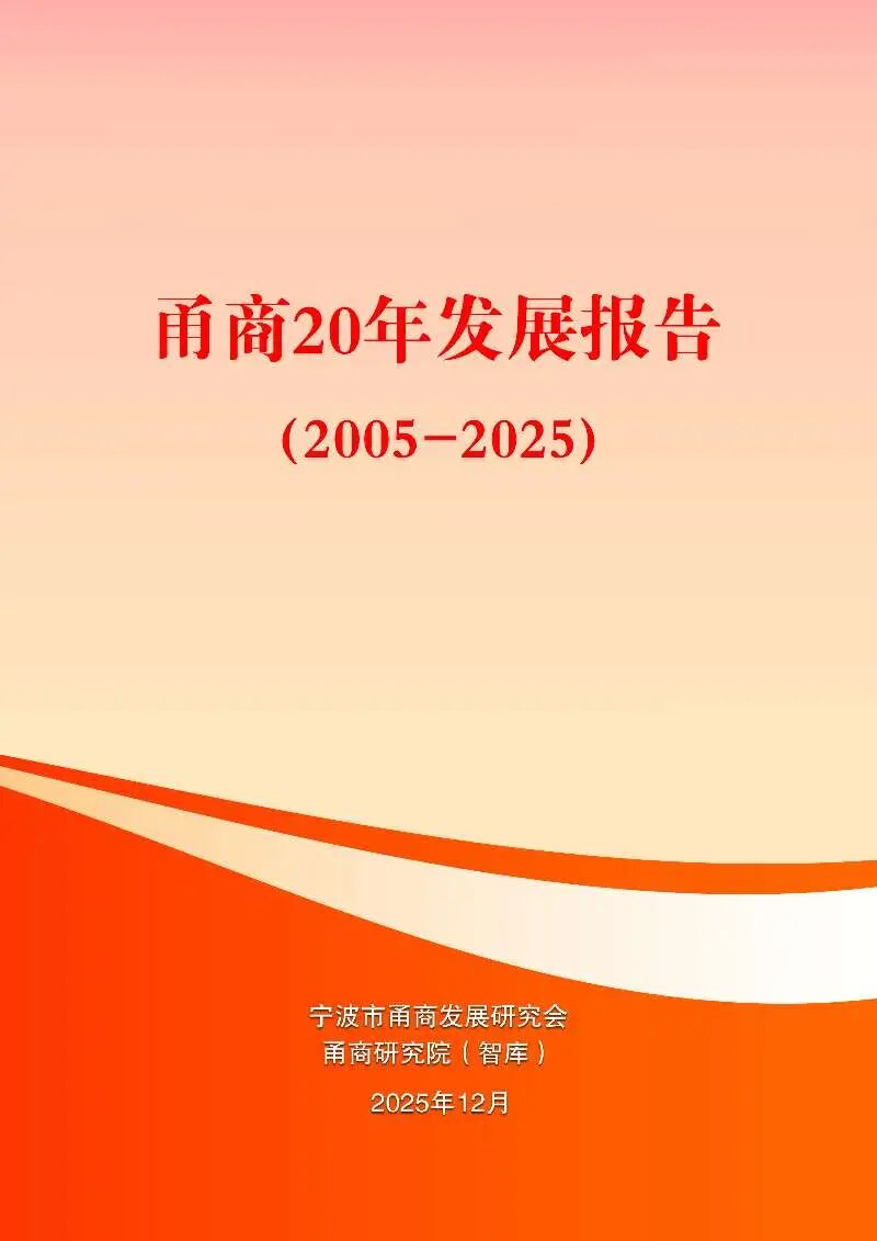 《甬商20周年发展报告(2005-2025)》是对甬商群体跨越式发展二十年的全景式梳理与深刻复盘,不仅展现了“单项冠军之城”“民营外贸万亿之城”的硬核实力,更凝练了甬商精神从“敢为人先”到“科技引领、全球视野”的时代演进,让广大甬商从中汲取智慧和力量,共同开启甬商更加辉煌的新篇章。