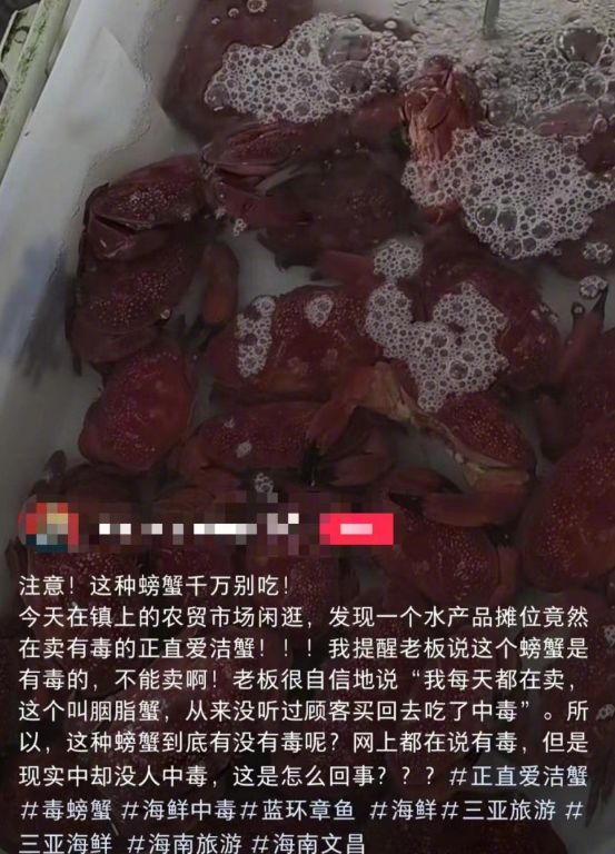 这位大V表示,大量案例显示,中毒症状在吃完螃蟹后的3个小时内出现,伴有恶心,随后出现严重的呕吐和腹泻,以及头晕、易困、四肢无力、嘴唇麻木、肌肉麻痹。