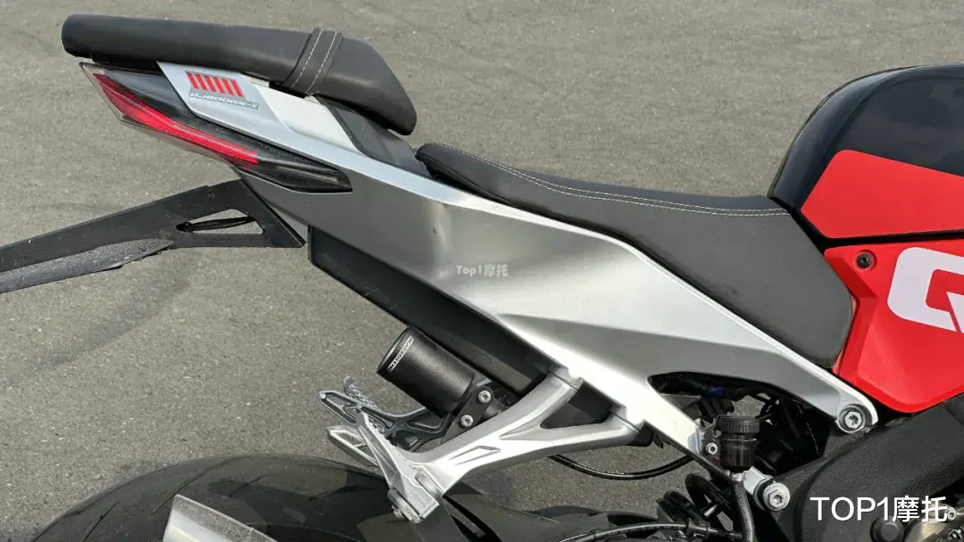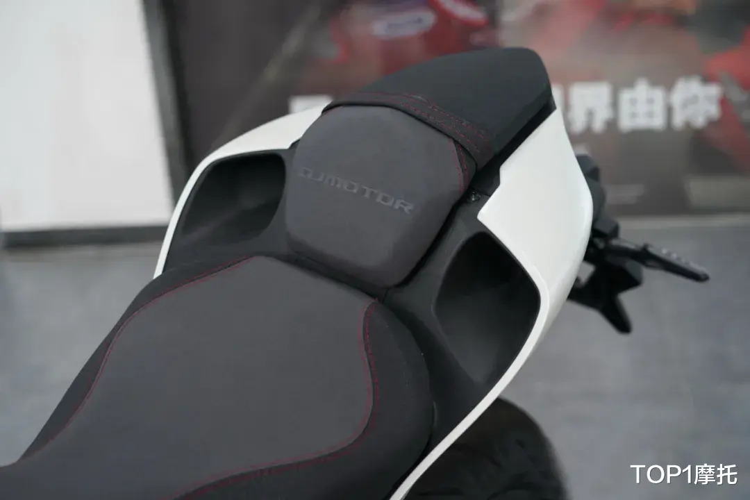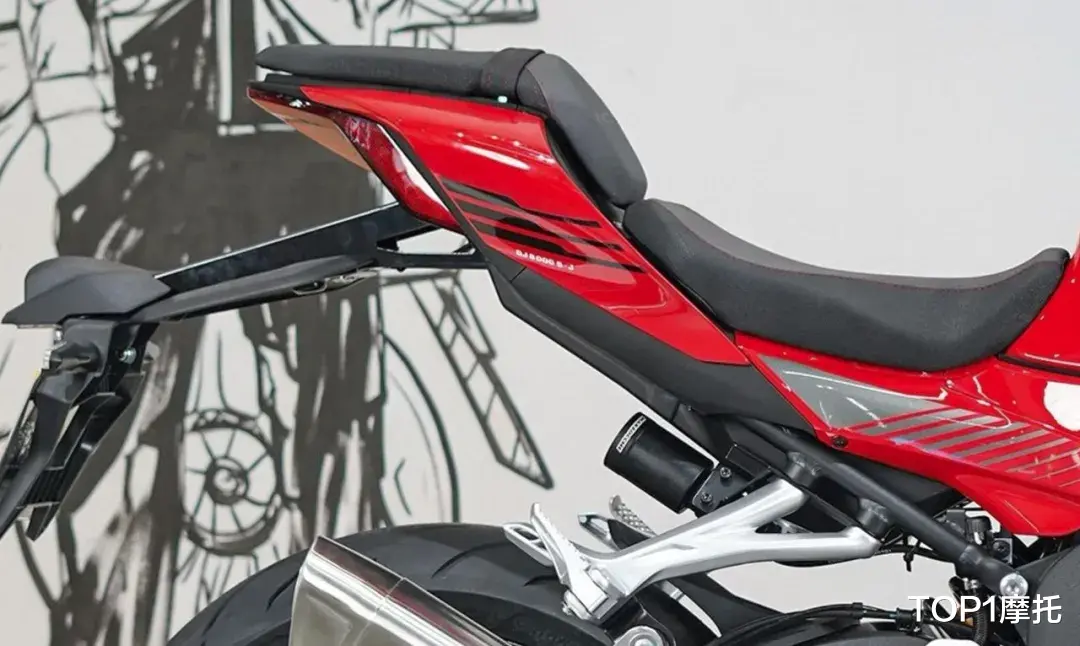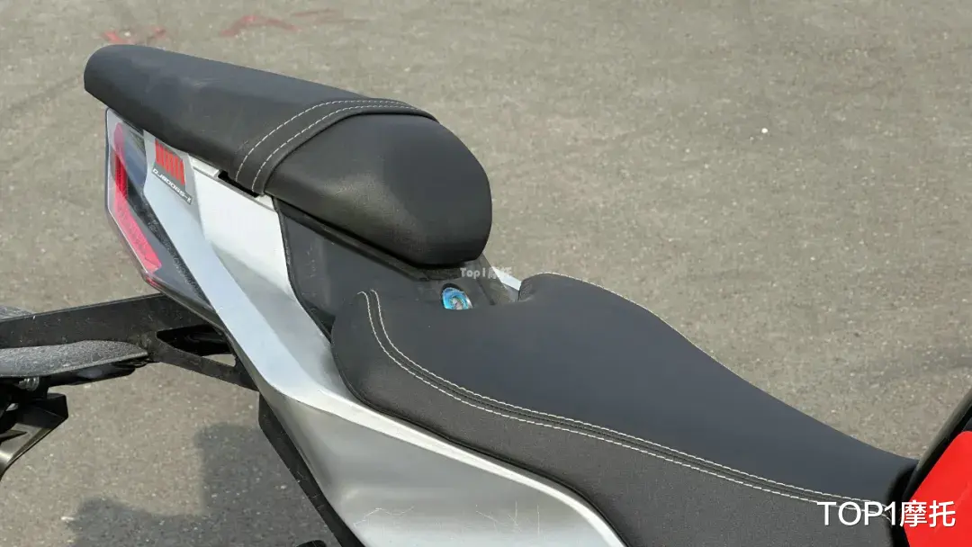 因为副车架结构的改变,新款赛800的坐垫也经过了重新设计,新的坐垫看上去更加简单,尤其是后座两边取消了通风口,整个后座坐垫的面积也更大,而后坐垫两侧原本的装饰覆盖件,被一体式的铝合金车架所取代,不过这还是工程样车,坐垫后面会不会改动现在还不能确定。