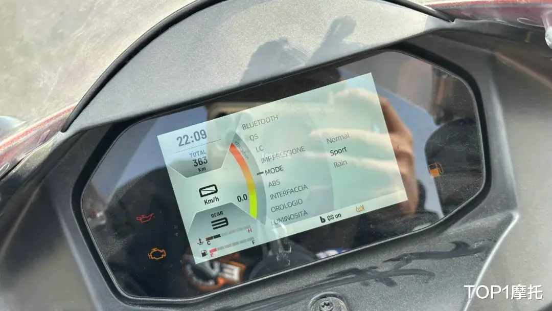 新款赛800的仪表尺寸应该没变,但是内部UI界面和功能设计均为全新的,仪表主界面信息的显示更加直观易读,进入设置界面可以看到各种丰富的功能,因为采用了电子油门,所以新款车型提供三种驾驶模式:雨天、标准、运动。同时ABS,TCS都可以关闭,而且还有双向快排、弹射起步、定速巡航、蓝牙连接等等。