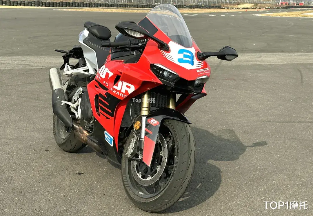 值得庆幸的是,新款赛800的实车小编最近已经拍到了,这两天在新工厂参观,在试车场地试车的时候,这台新的赛800刚好也在,所以简单的拍了一点。虽然还是工程样车的状态,但实车的质感和外观,比起上图要好看很多很多。因为实车采用了WSBK赛车涂装,而且副车架不是涂黑的设计,所以在质感的呈现上效果更出色。觉得不习惯的新车头造型,在看到实车之后小编也没觉得有什么不妥,整台车的颜值还是在线的。