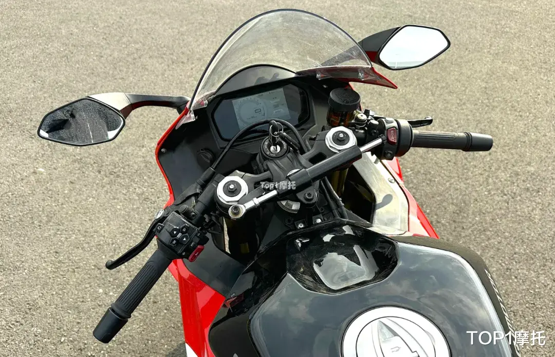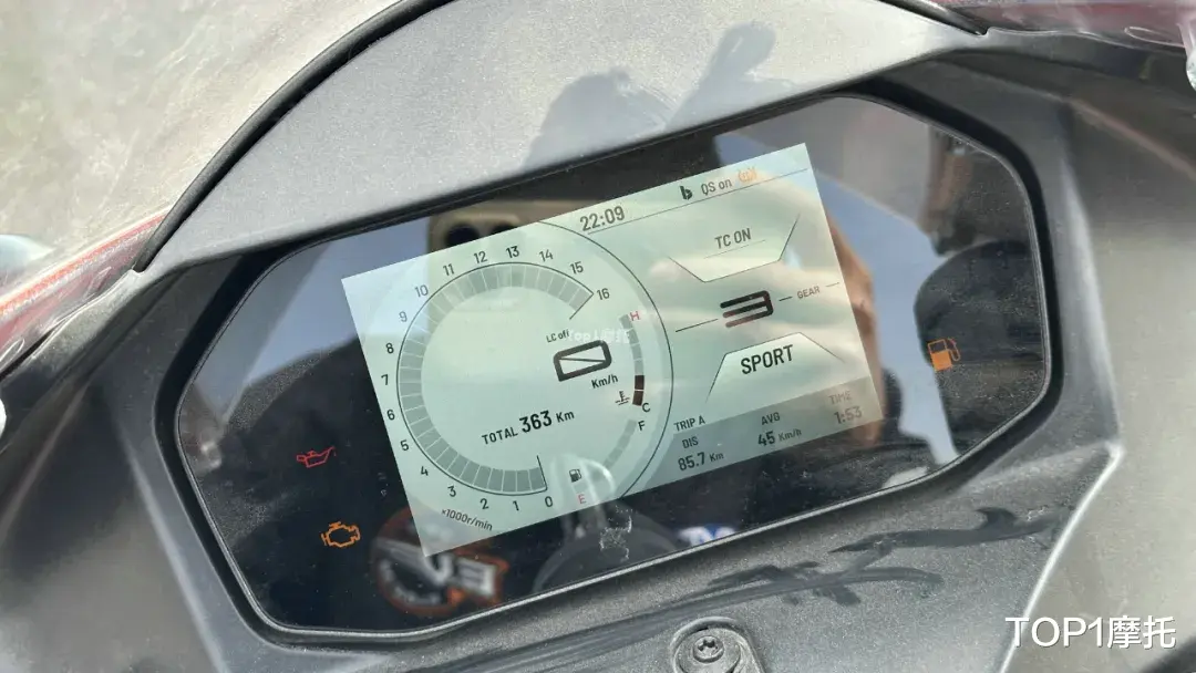 第一视角下一眼就能看到新的仪表,新的车把按键,很显然车把按键的功能分布更加合理。左侧四个方向键分别对应:上/下+确认/返回,操作起来更加方便易上手,独立出来的TCS和定速巡航有专门的开关,右侧相对简单都是基本的功能,按键的设计和手感有很大的进步。
