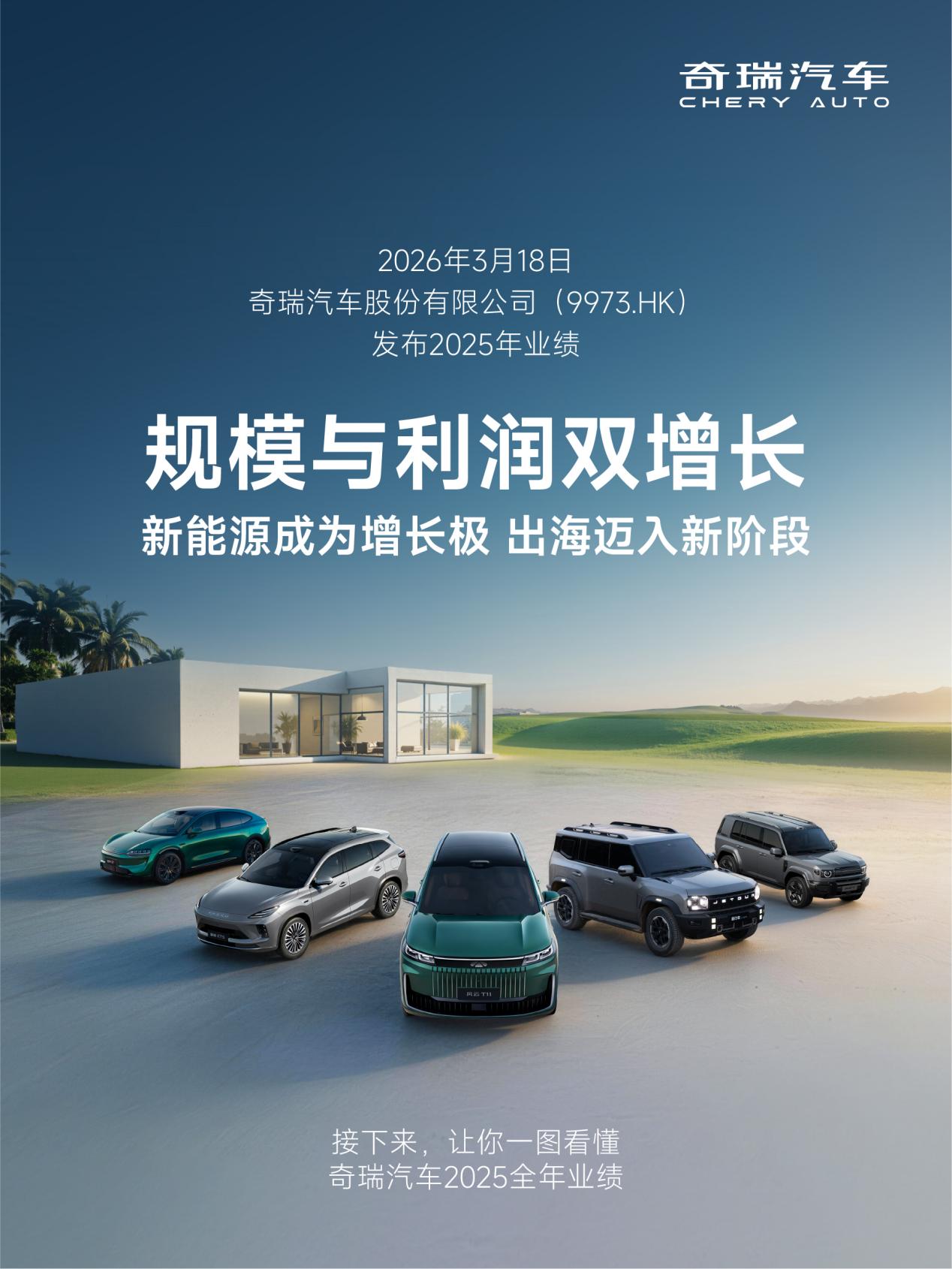 2025年的中国汽车行业,整体迈入提质增效、稳健前行的新阶段,各大车企纷纷从规模扩张转向经营质效提升,奇瑞汽车紧跟行业发展趋势,凭借前瞻的全球化布局与精细化运营,在港股上市首年便交出优异业绩公告,195.07亿元净利润实现大幅同比增长,各项财务指标持续向好,用一份含金量十足的成绩单,展现出自主品牌头部车企的责任与担当,也彰显出高质量发展的丰硕成果。