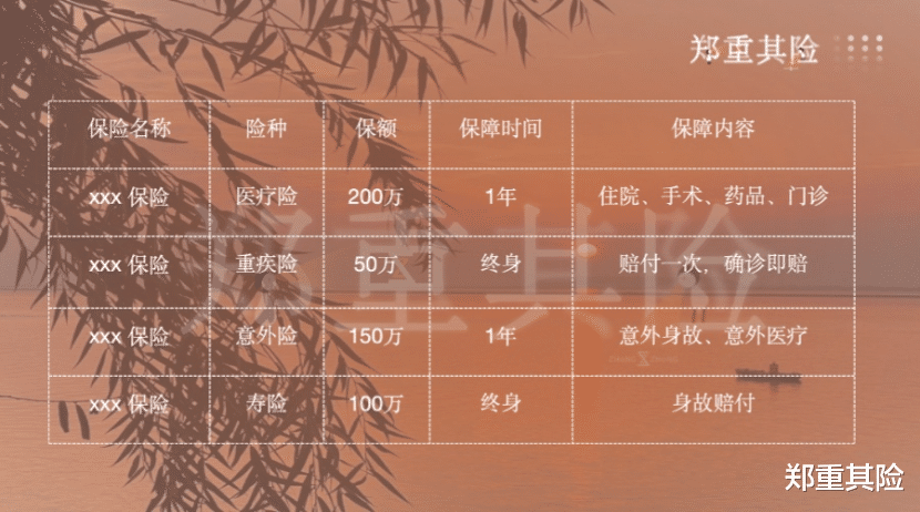 把自己买的保险整理成一张表格,清晰明了,一目了然!