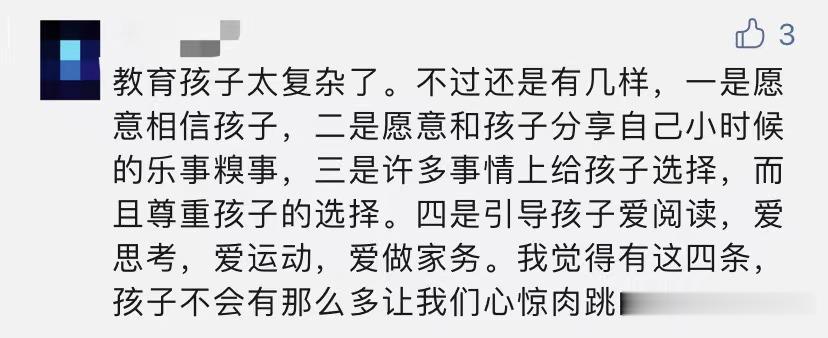 孩子的世界并不如家长们幻想地那样简单,父母要尝试了解孩子的想法,不是依靠主观的臆测选择所谓好的解决方式,而是通过观察和沟通来真正了解孩子:“有些事大人觉得没什么,但是从孩子的角度看,可能天都要塌下来了。”