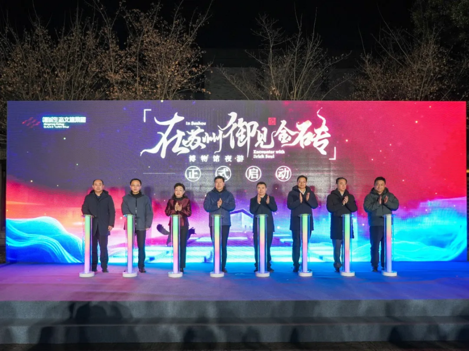 12月26日,「在苏州・御见金砖」沉浸式夜游启动仪式在苏州御窑金砖博物馆盛大举行。活动由苏州市相城区文化体育和旅游局、苏州市相城生态文旅集团、相城高新区管委会联合主办,苏州御窑金砖博物馆承办,近百位省、市、区相关单位领导、行业嘉宾、媒体达人及旅行社代表齐聚现场,共同见证这场穿越古今的文旅盛宴正式启幕。