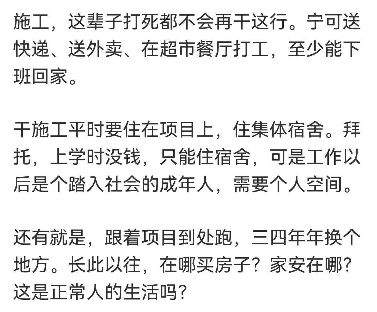 施工。总是在工地上跑,没有一个落脚地,没有家的感觉。
