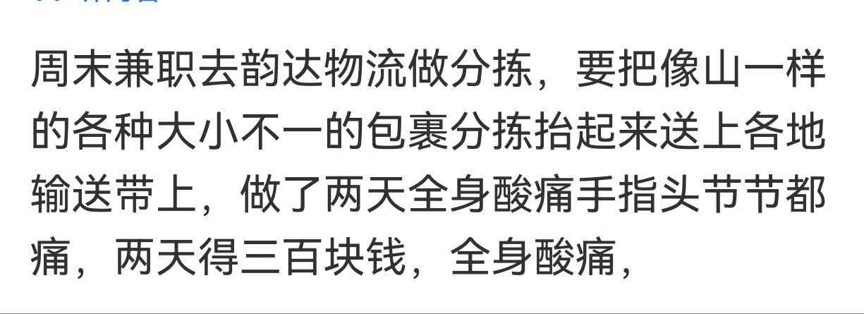 快递分拣。遇到网络上的购物节,物流量大的时候,更是忙得头都抬不起来。
