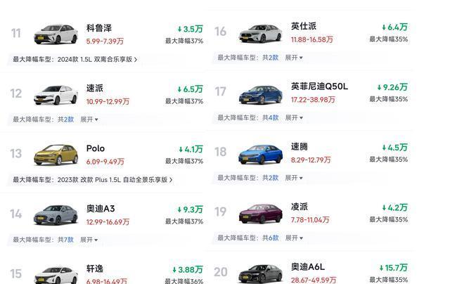 大众宝来:最新款2025款车型最高降价4.5万元,入门级车型入手仅需6万多元。