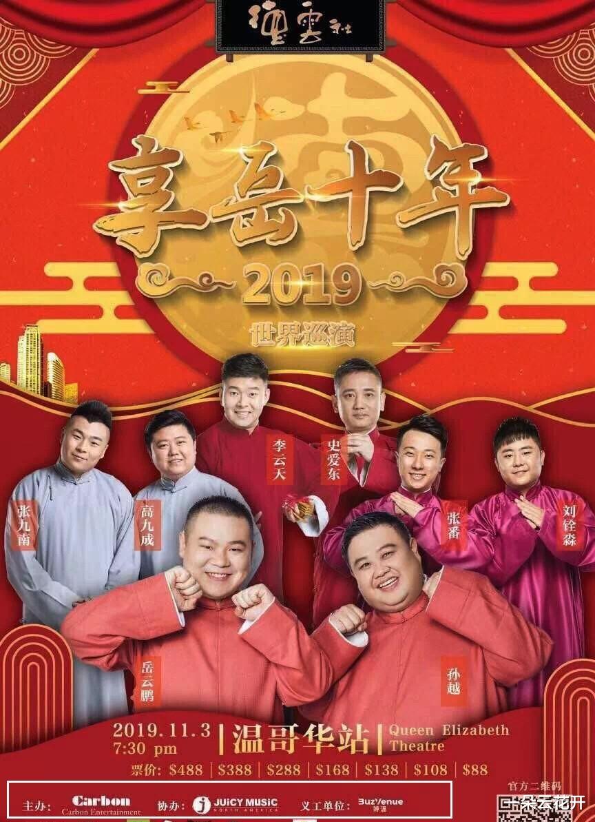 最低票价仅为48加元,最高票价也只有188加元,不及德云社最高票价的一半。
