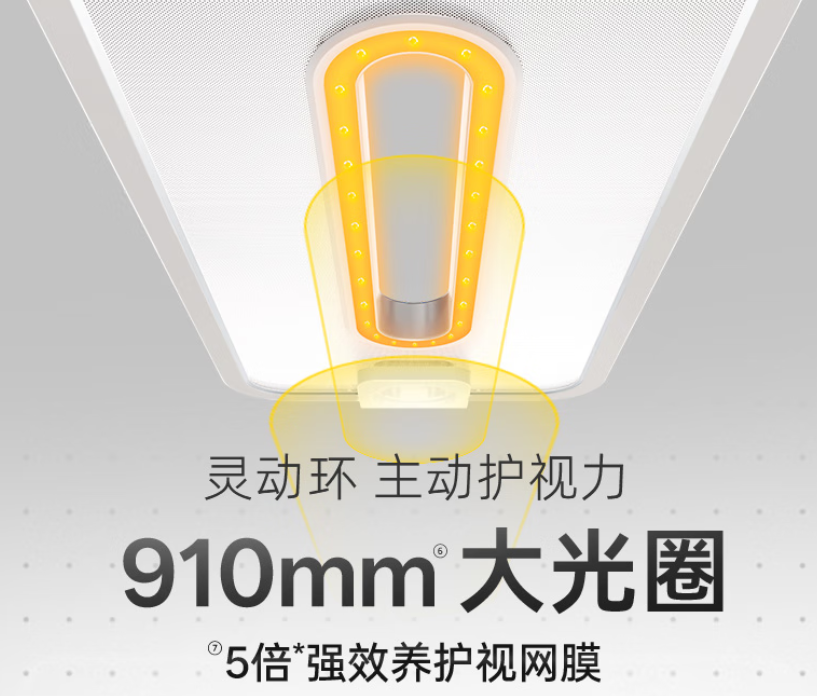 G7采用灵动环设计,在灯头上集成910mm大光圈,利用AI智能控光系统,根据外界环节光变化,随时调整光圈模式,焕活、滋养双管齐下,让消费者疲惫双眼动起来,增强眼底细胞活 性,保护视力健康。