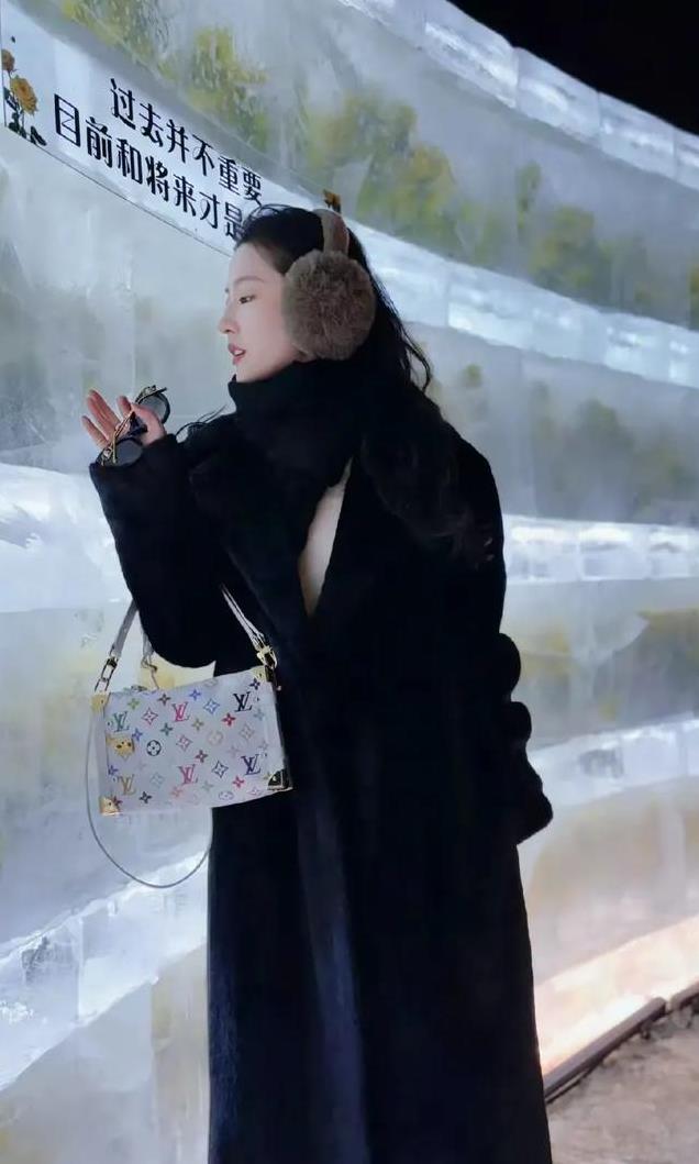 得 6000 块,全身上下可能就那个咖啡色耳罩便宜点。这一身行头加起来,咋说也得十万打底。跟那些把自己裹得严严实实的普通游客一比,刘亦菲简直就是时尚的代表,在冰天雪地里走出了一场豪华的时尚秀。