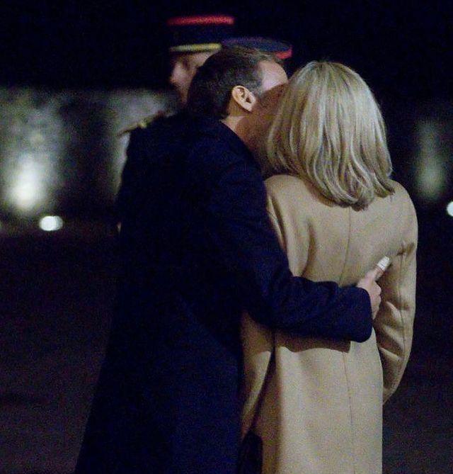 在机场下飞机的时候,镜头正好拍下布丽吉特轻轻拍了马克龙一巴掌,场面看似打脸,实则充满亲密与默契。